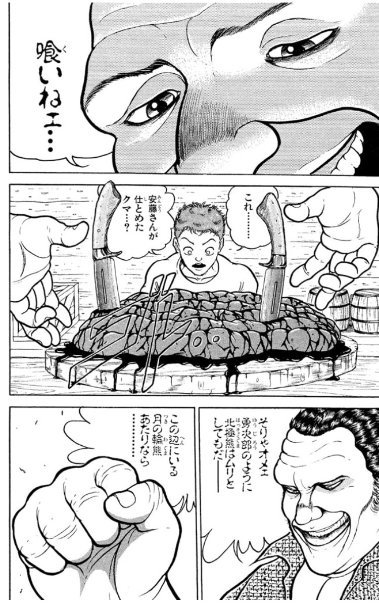 熊は細菌や寄生虫が多いので本当は生で食べちゃいけないそうですか、猟師さんの一部の人は刺身でも食べるそうです、それがメチャクチャ美味いらしい!幻の一品ですね、